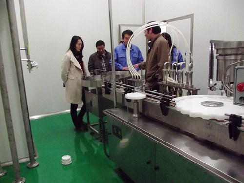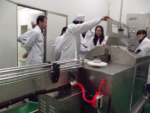 檢查組現(xiàn)場(chǎng)檢查口服液灌裝軋蓋機(jī)