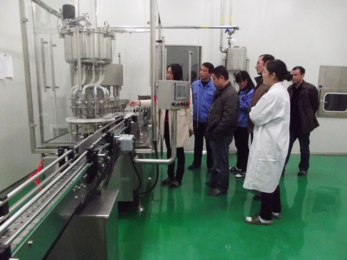 專家組現(xiàn)場(chǎng)檢查大容量注射劑灌裝壓塞機(jī)