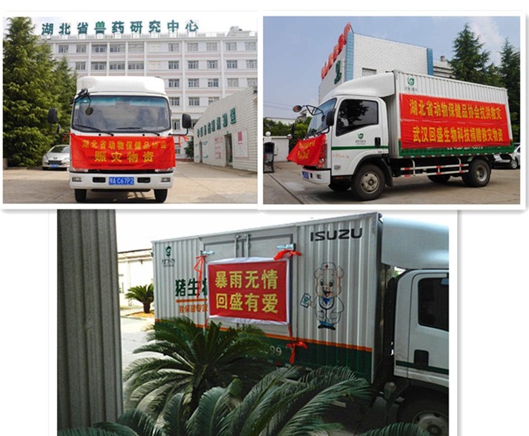 同時(shí),由于多地豬場被淹,損失慘重,因?yàn)?zāi)致死的畜禽尸體無害化處理壓力劇增。在此危急情況之下,回盛公司為幫助洪澇災(zāi)區(qū)養(yǎng)殖戶盡快恢復(fù)生產(chǎn),渡過難關(guān),緊急調(diào)撥4噸近萬瓶消毒藥品運(yùn)往災(zāi)區(qū)養(yǎng)殖戶手中。