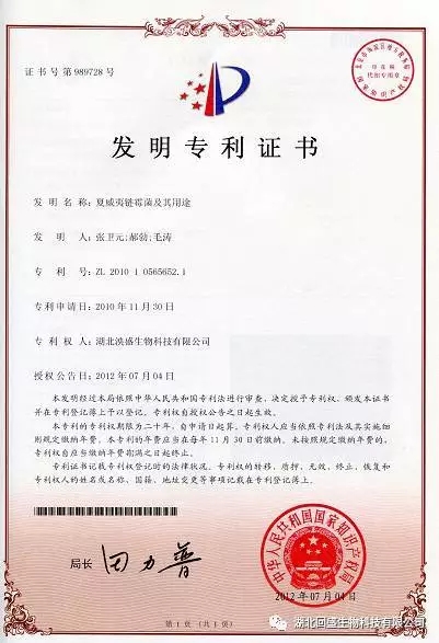 近日,從國(guó)家知識(shí)產(chǎn)權(quán)局傳來喜訊,應(yīng)城市知識(shí)產(chǎn)權(quán)局組織申報(bào)的湖北回盛生物科技有限公司發(fā)明專利“夏威夷鏈霉菌及其用途”(ZL2010105652.1)榮獲第十九屆中國(guó)發(fā)明專利優(yōu)秀獎(jiǎng)。